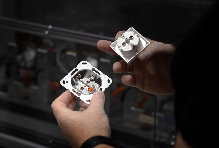 ¹ Die Abdeckung der Steckdose und Zusatzkomponenten, wie z. B. transparente Beschriftungsfelder, werden mit Neuware gefertigt. Der Rezyklatanteil kann durch Beimischung abweichen.