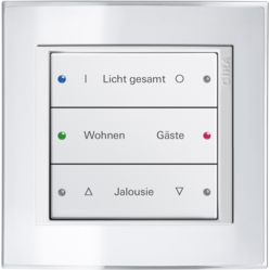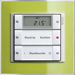 Gira Event Klar bringt Farben mit einer ganz eigenen Leuchtkraft hervor. Der besondere Effekt dieser Designlinie ist die klare Tiefenoptik mit hochglänzender Oberfläche, die durch die farbige Hinterlegung von transparentem Kunststoff entsteht.