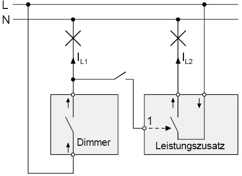 Verbindungsleitung vom Lastanschluss des Dimmers zur Klemme 1 des