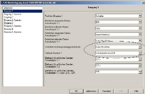Im Bild sind die inkorrekten Parameter des Binäreingangs dargestellt. Diese Darstellung ist nur in der ETS 3 Professional möglich, nicht aber in der ETS 3 Starter.