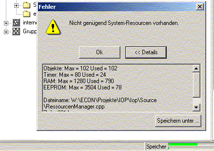 Welchen Hintergrund hat die Fehlermeldung "Nicht genügend Systemresourcen vorhanden." (siehe Bild) im Smart Sensor PlugIn, obwohl noch nicht die maximale Anzahl verwendbarer Gruppenadressen überschritten wurde?