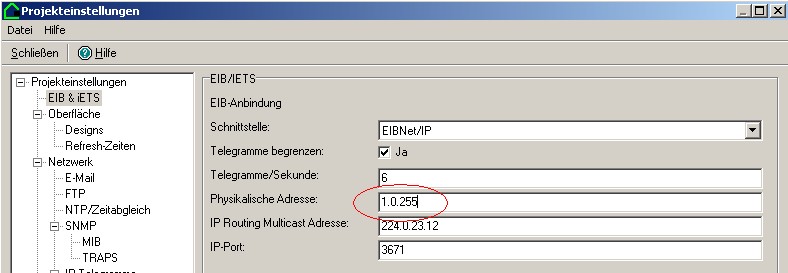 Besonders wichtig ist die Einstellung der physikalischen Adresse der