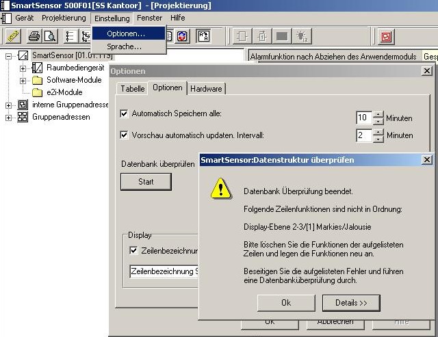 Friert der SmartSensor auf Grund eines externen Telegramms ein, sollten Sie die Datenbanküberprüfung im PlugIn nutzen (siehe Bild).