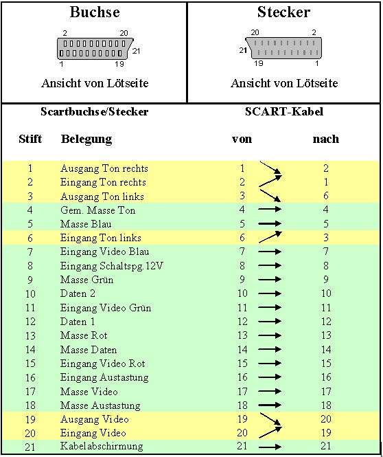 Die PIN-Belegung entnehmen Sie bitte der folgenden Tabelle , die hier sowohl Buchse als auch Stecker angezeigt wird.