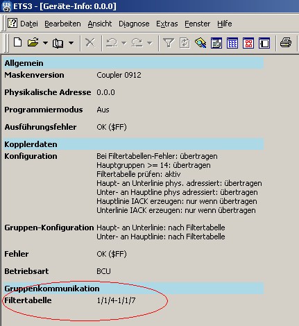 Wie lassen sich über die ETS 3 Filtertabellen aus dem Linienkoppler auslesen?