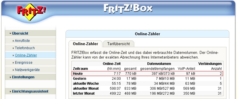 Diesen Wert kann der HomeServer-Nutzer auch selbst ermitteln, in dem er bei seinem Router, falls vorhanden, den Online-Zähler entsprechend kontrolliert.