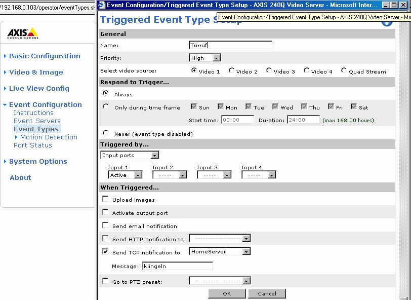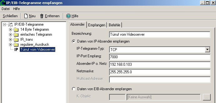 Bild 3 und 4 zeigen die Einstellungen zur Signalisierung eines Türrufes durch ein IP-Telegramm des Videoservers an den Home- bzw. FacilityServer. Hier wird der frei gewählte Port 7000 verwendet.