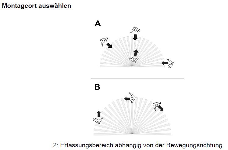 Bewegungsrichtung beachten. Unterschieden wird zwischen Draufzugehen A und Quergehen B ( 2). Bewegungen quer zum Bewegungsmelder können besser erfasst werden als Bewegungen auf den Bewegungsmelder zu.