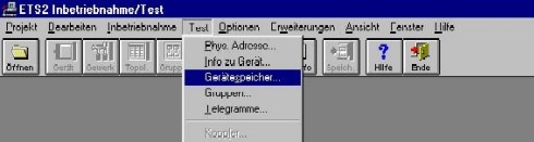 Wählen Sie in der ETS 2 Inbetriebnahme/Test/Gerätespeicher (Bild 1).