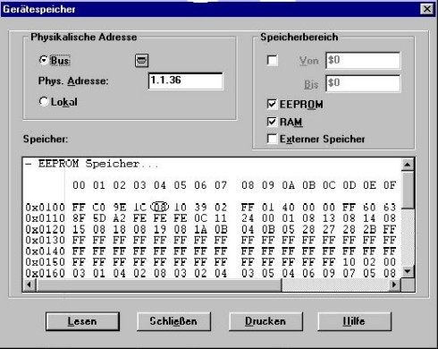 Die Herstellerkennung lässt sich über den Gerätespeicher auslesen. Um den Gerätespeicher auszulesen, schließen Sie Ihren Inbetriebnahme-PC wie zur Inbetriebnahme an den KNX an.