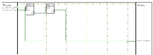 Jedesmal wenn ein Telegramm der Tasten empfangen wird, schaltet der TFF-Block von "0" auf "1" oder umgekehrt (herkömmlicher Umschalter). Darüber hinaus wird wird aber auch jedesmal der DMFF–Block gestartet, der nach der programmierten Zeit den TFF–Block wieder auf "0" setzt.