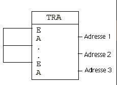 Der TRA-Block kopiert den Wert des Eingangsignals an den Ausgang. Es können bis zu 8 Signale in einen Block kopiert werden. Weitere Verwendung findet der Block, wenn ein lokales oder internes Signal auch als externes Signal genutzt werden soll.